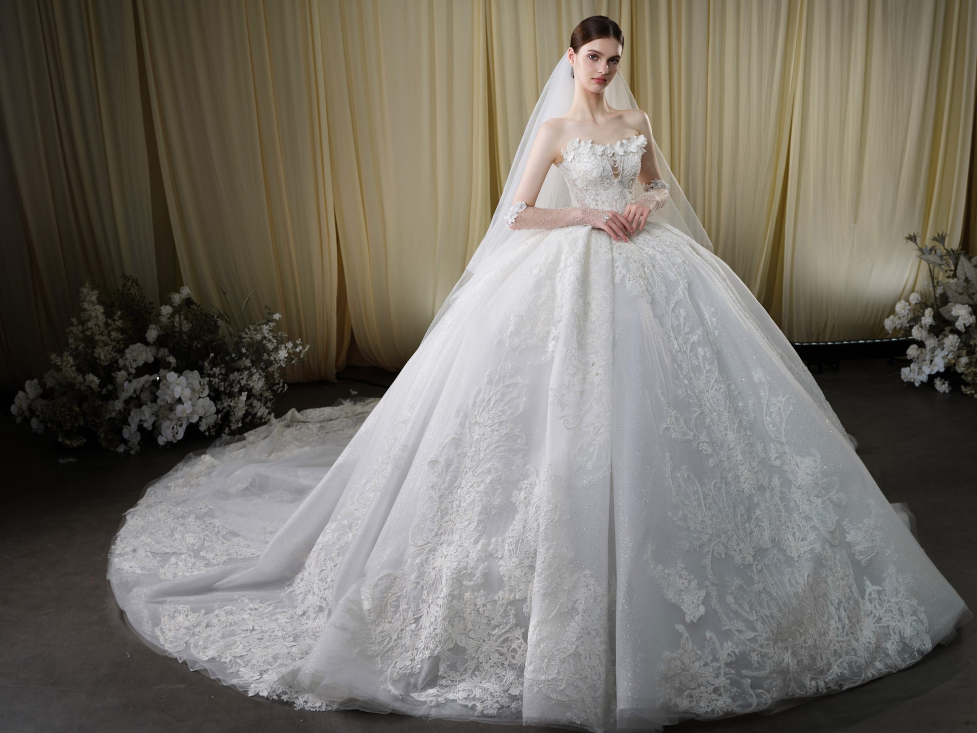 Three-dimensional blossoms unfurl gracefully from neckline to sleeves 🌹✨.