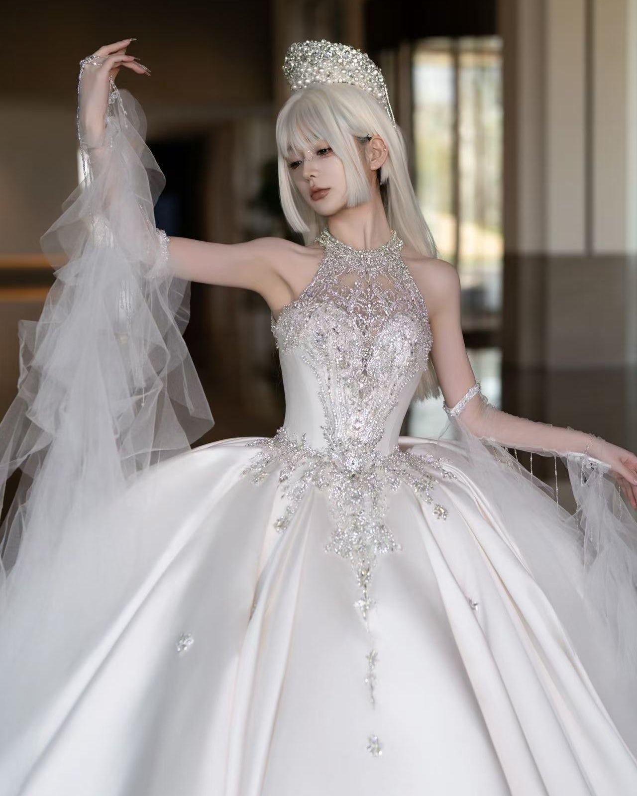 This elegant bridal dress is crafted to enhance your special day with timeless beauty and refined detail. Designed with expert tailoring, it offers a flattering silhouette that complements various body types. The high-quality fabric ensures comfort throughout your celebration, while subtle embellishments add a touch of sophistication. Perfect for brides seeking a classic yet distinctive gown that combines style and grace effortlessly.