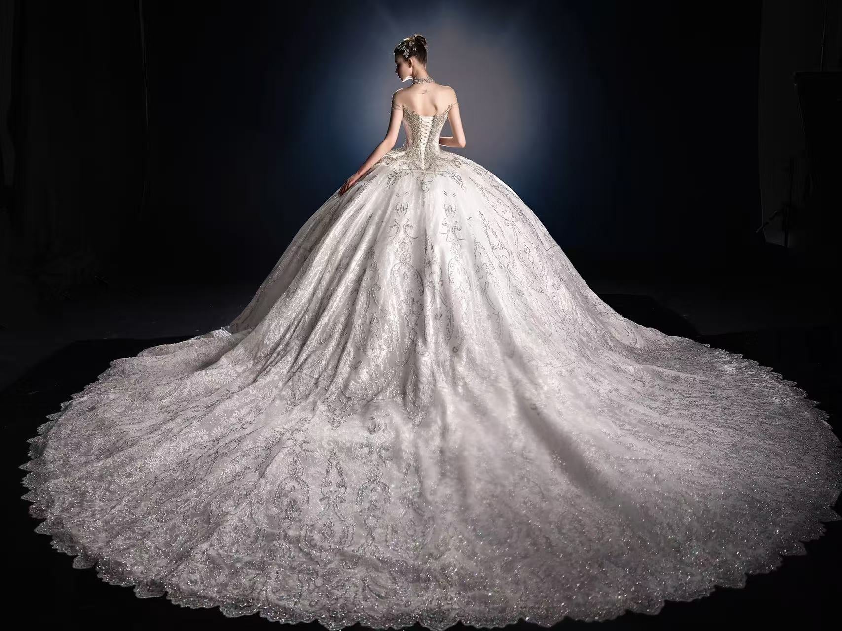 Rule the universe of romance in Cosmic Primacy, a bridal masterpiece that blends celestial wonder with royal elegance. This gown is made for the bride who dreams beyond the stars and walks with the grace of a queen 👸✨.