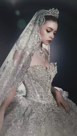 Unveil your inner queen 👑 with "Radiance", that embodies pure splendor and timeless luxury. Crafted for the bride who wants to shine like a thousand stars, this masterpiece is a vision of light, glamour, and royal elegance.