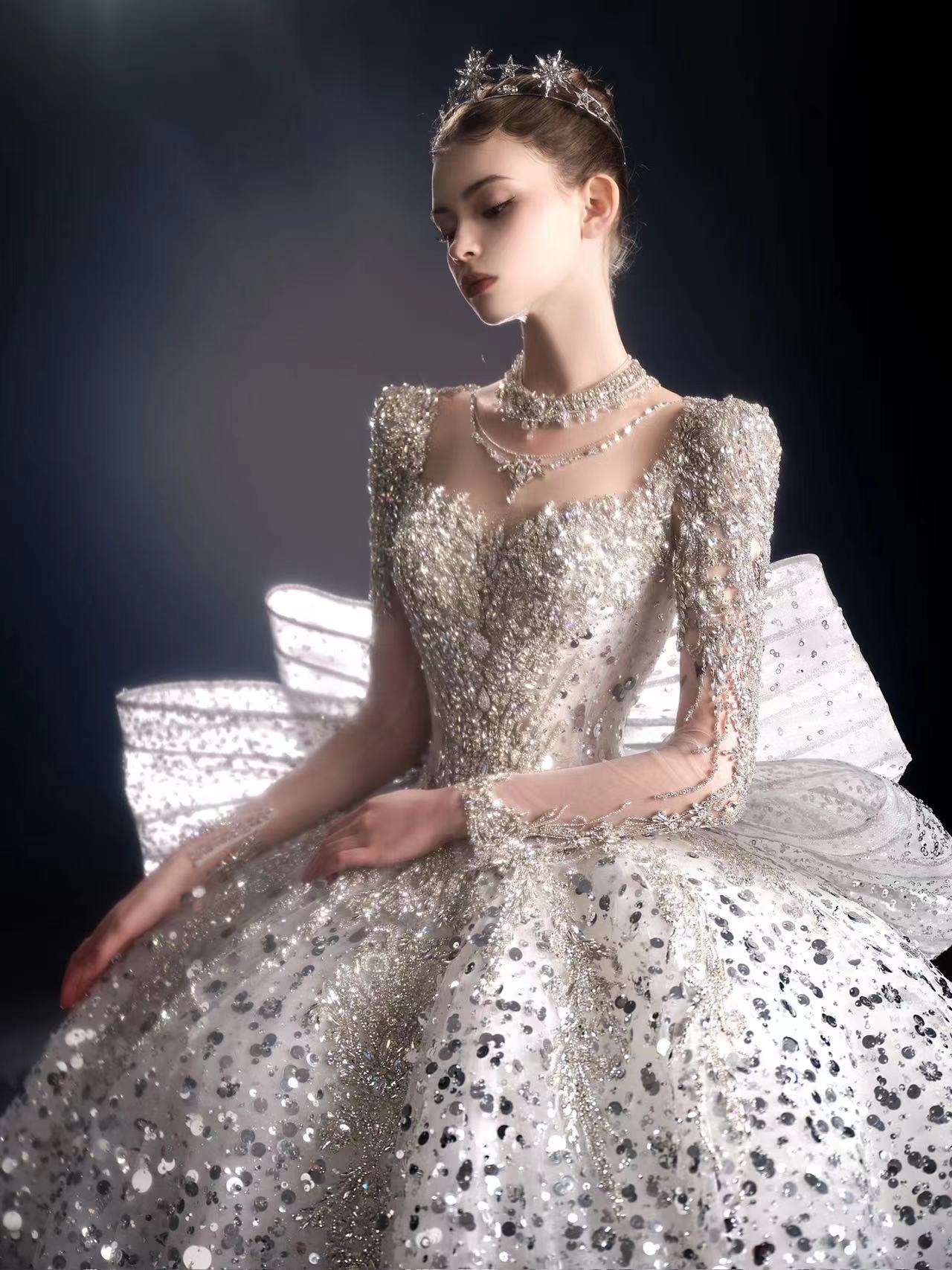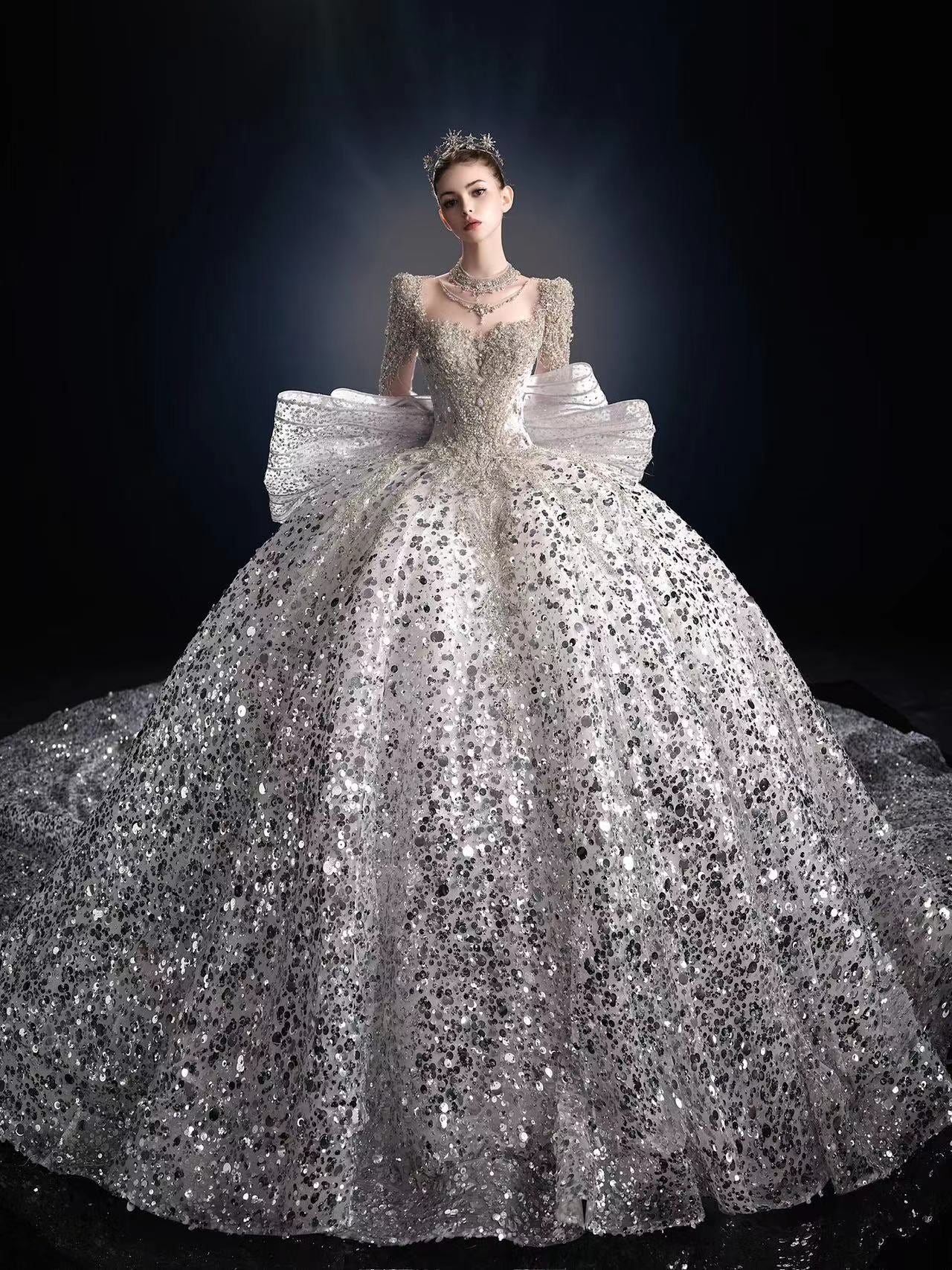Step into your fairytale with Stardust, a gown designed to capture the magic of the moment you say “I do.” This ethereal bridal dress features a delicate constellation of shimmering beadwork and sequins that glisten like a starry night sky, casting a celestial glow with every step. The full A-line skirt drifts into a graceful chapel train, ensuring a timeless and breathtaking entrance. Whether you're walking down the aisle beneath the open sky or beneath the glow of chandeliers, Stardust promises to make you the center of every gaze.