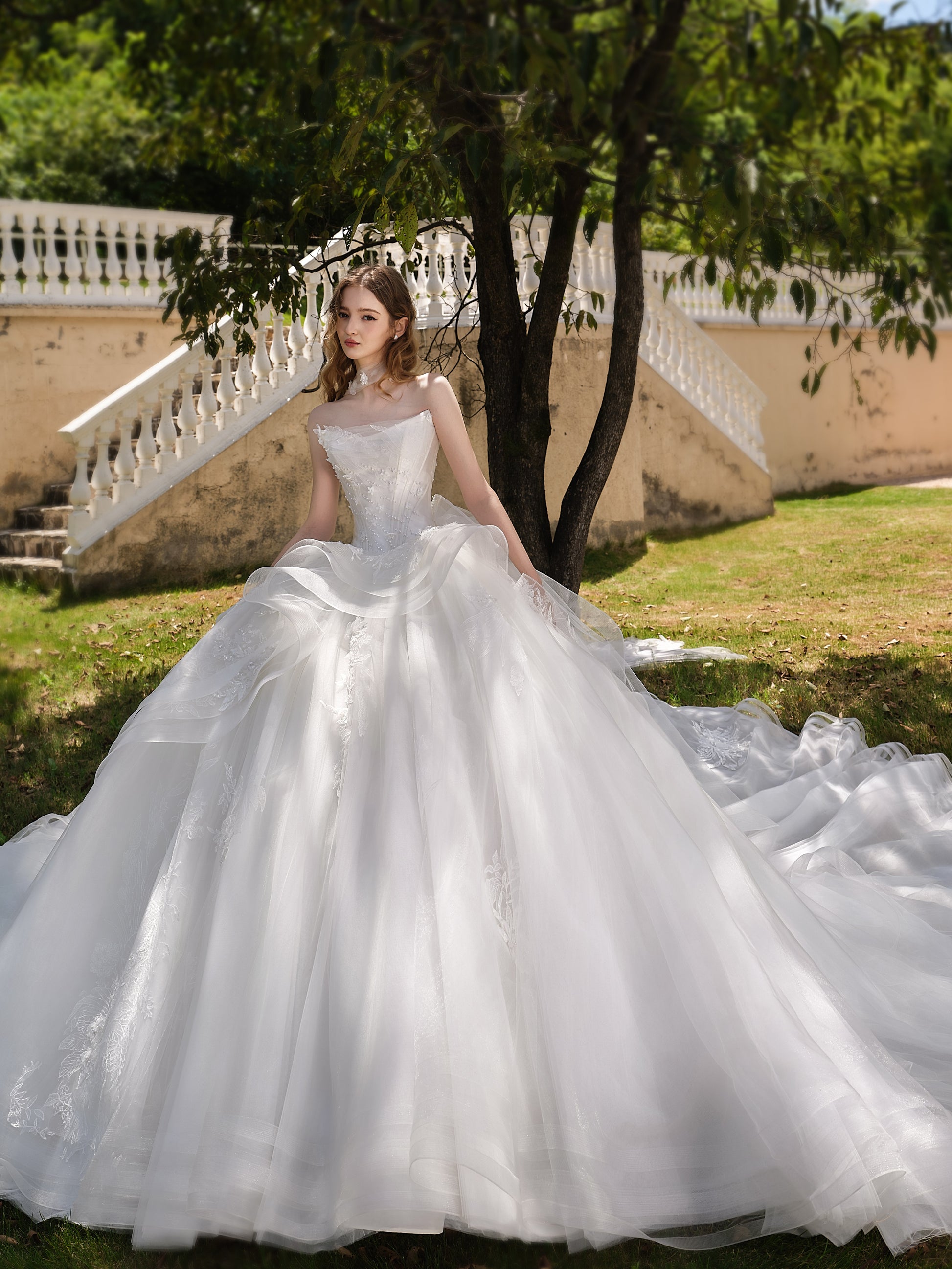 Dreams of a gown that blends classic elegance with modern fairytale charm ✨. Perfect for garden weddings 🌳, ballroom celebrations 🏰, or any moment where love feels like poetry.