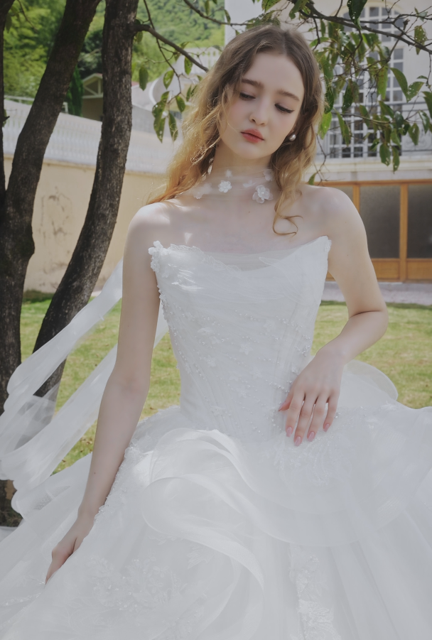 Dreamy Skirt ☁️ – Layers of airy tulle and organza cascade into a voluminous skirt, flowing gracefully with every step.